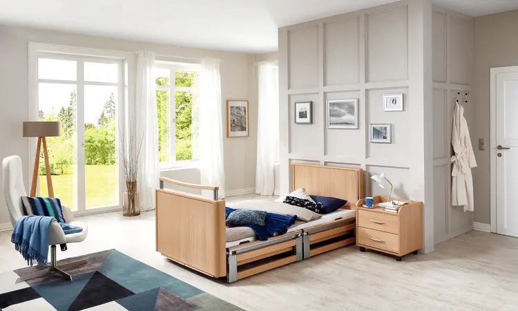 When people in need of care live at home, their bed often becomes the focal point of day-to-day living. Sleeping, mealtimes, watching television, having conversations - the care bed is where many activities take place. In view of this, the bed should create a safe and secure atmosphere through its comfort and cosiness, as well as promote the mobility of the occupant and lighten the burden of caregiving relatives. Burmeier beds satisfy these requirements. We attach great importance to high safety, numerous helpful functions, an attractive design and an excellent price-performance ratio. Burmeier care beds ensure a better quality of life - and thanks to delivery times of only 24 to 48 hours, they are always to hand when they are needed.